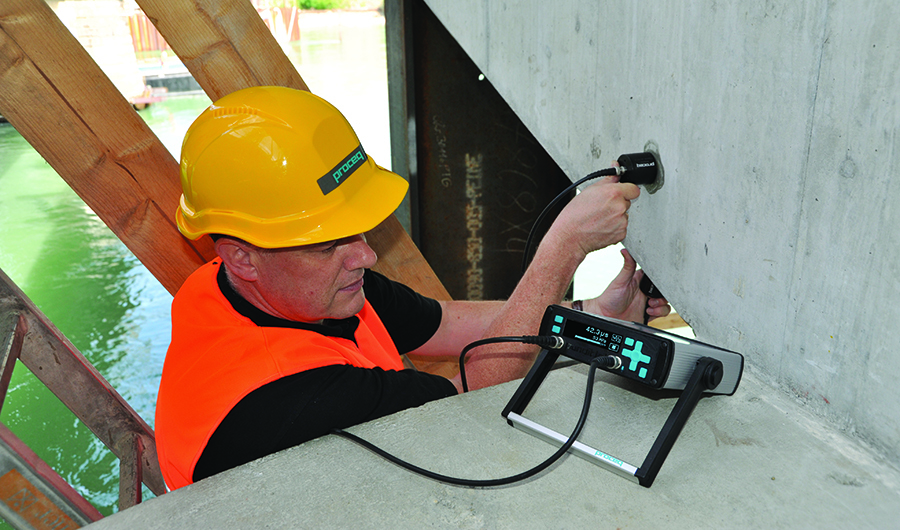 - Метод отрыва со скалыванием. Используется для определения прочности конструкций и качества материалов, из которых возведены стены (в основном, бетона). Суть метода заключается в просверливании отверстий в материале с дальнейшим закреплением анкеров. Впоследствии их вырывают из конструкции посредством специального оборудования. После этого делают замеры усилия в момент вырывания анкера. Если работы проведены правильно, то в местах отрыва остаются воронки глубиной, соответствующей длине анкеров. Для измерения усилия отрыва используется специальный прибор. Он отражает точные значения приложенной к анкеру нагрузки. На основании усредненных результатов испытаний с помощью формулы определяют прочность бетона и сопоставляют значение с проектным классом.
