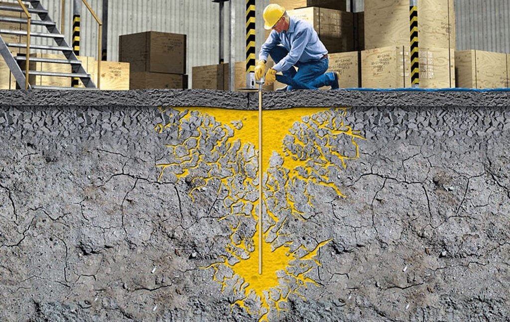- Инъектирование грунта. Производится с целью повышения прочности, гидрофобности, стабильности почвы под основанием.